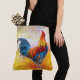 Une peinture à l'huile colorée d'art numérique de coq de jeune coq. Cet art d'oiseau est fait comme un regard traditionnel de peinture à l'huile avec des couleurs lumineuses en bleu, rouge, orange, et le jaune. Peinture originale d'art d'animal de ferme. Grand pour un décor rustique ou n'importe qui de ferme ce aime des poulets.