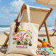Carry the joy of Easter wherever you go with this adorable personalized tote bag. Featuring a whimsical cartoon bunny surrounded by colorful Easter eggs, lollipops, chocolates, and candy treats, this design captures the "Egg-static for Candy" spirit in vibrant, playful style. Customized with your name for a special touch, it's perfect for egg hunts, candy hauls, or everyday errands.