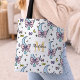 Tote Bag Personalized Girl Cute Bow Name Moons White