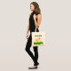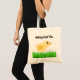 Personalized tote bag with adorable little light yellow chicken standing on green grass