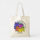 Sac fourre-tout FROGS coloré et personnalisé, conçu avec une famille de grenouilles aux couleurs vives, dressé contre un cercle turquoise dans l'arrière - plan. Le texte incurvé se lit TOUJOURS ENTIÈREMENT SUR DIEU, qui est basé sur l'acronyme chrétien populaire pour F.R.O.G. Il y a un nom d'espace réservé personnalisable en bas, que vous pouvez personnaliser avec votre propre nom. Le dessin est répété sur le dos.