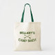 Obtenez des sacs fourre-tout assortis pour tous les campeurs à votre séjour de camping Bachelorette. Ce Camp Bach fourre-tout, avec du texte et des accents vert forêt a un look vintage. Personnalisez avec le nom ou le texte de la mariée de votre choix. Les flèches dessinées à la main ajoutent une ambiance rétro. Idéal pour les sacs-cadeaux de bachelorette qui peuvent être réutilisés pour les achats futurs. Le texte vert de la forêt et les couleurs des accents peuvent être customisés dans l'outil de conception.