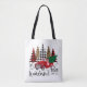 Un sac fourre-tout de Noël amusant et mignon avec le vieux camion de mode rouge avec des arbres motifs. Vous pouvez personnaliser ce fourre-tout au dos avec votre propre nom ou texte. Parfait pour un cadeau pour quelqu'un pour les vacances.