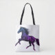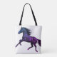 A beautiful photo-like image of a black and blue stallion is on the front and back of this reusable shopping bag/tote bag.