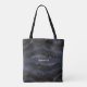 Sac fourre-tout personnalisé avec une belle image de pierre abstraite foncée. Les couleurs tourbillonnent par vagues. Les couleurs principales sont le noir, le bleu-gris avec un ruban d'or faux qui traverse la conception. Moderne et tendance.