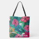 Sac fourre-tout de plage botanique tropical fleuri Coloré, vibrant, parfait pour des vacances d'été.Cette serviette de plage tropicale est parfait pour des vacances de voyage avec aquarelle verte tropicale, monstère et feuilles de palmiers avec de belles fleurs tropicales. Créez votre propre nom sur cette serviette de plage.
