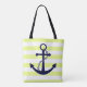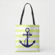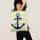 Tote Bag Plage rayée jaune nautique d'Ancre de bleu marine