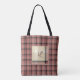 Un assortiment de plaids roses, noires et bronzés avec un carré enfermant une initiale. Vous serez fier de montrer ces totes pendant que vous magasinez pour toutes les raisons