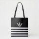 Belles rayures modernes noir et blanc avec Sac fourre-tout à trois plumes. Elégante femme noir blanc shopping Sac.