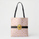 Sac fourre-tout à pois dorés sur fond rose de mode. La lettre M peut être personnalisée.