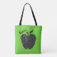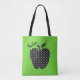 Joli sac fourre-tout d'enseignant, avec des graphismes une pomme à pois noir et blanc, sur un arrière - plan vert. Le texte de la coutume noire lit Enseignant et peut être personnalisé pour lire ce que vous voulez.