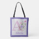Tote Bag Première initiale Plus Nom Alicia avec Fleurs