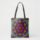 Tote Bag Psychédélique Mandala Fleur violet orange et vert