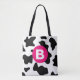 Tote Bag Quirky Cow Patch Pattern Pink Monogram