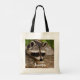 Un sac fourre-tout avec la photo d'un joli et curieux raton laveur reposant son visage sur un rondelle de bois. Adorable.