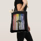Sur le sac fourre-tout d'épaule avec pluie de couleur arc-en-ciel tombant sur la silhouette avec un parapluie. L'oeuvre originale de Ray Bean est acrylique sur tableau en toile.
