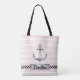 Tote Bag Rayures roses eau-forte personnalisées Ancre