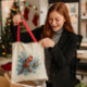 This budget-friendly tote bag showcases a charming watercolor illustration of a vibrant red cardinal bird delicately perched on a pine branch, adorned with cozy pinecones. Perfect for nature enthusiasts and bird lovers, this tote makes a thoughtful and heartwarming gift. Ideal for carrying essentials during the festive Christmas holidays and throughout the winter season, this bag is also a lovely present for a special woman, friend, coworker, neighbor, or grandmother. AI artwork designed by susang6