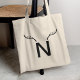 Simpe, Stylish Christmas Reindeer Antler coutume sac fourre-tout initial avec deux bois de cerfs en silhouette en noir sur une seule lettre dans la typographie minimaliste moderne. La lettre peut facilement être personnalisée avec l'initiale de votre être aimé comme le cadeau festif parfait.