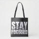 Restez focalisé - Motivational Phrase avec sac de texte blanc. Fait un grand cadeau de motivation pour un ami. Si vous aimez ce design et le souhaitez sur un produit différent ou une couleur différente, envoyez-nous un courriel à tuniversedesigns.com