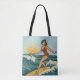 Tote Bag Retro Coastal Pin-Up Surfer Art | Blue Surf Beach