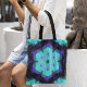 Tote Bag Retro Mandala Flower bleu violet et vert