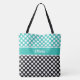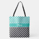 Tote Bag Retro Nommé Turquoise, Noir & Blanc Polka Dot