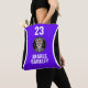 This roller derby totebag features a vibrant purple, black and white design. You can replace the logo with your team logo. You can also add your team number and skater name. Great for carrying your skate gear. ••• For more sports team uniforms, visit my store Zazzle.com/JessicaAmberArtist ••• For custom orders, message me on Zazzle