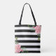 Ce Sac fourre-tout personnalisé "Romantic Rose Floral Black White Stripes" est un sacré sac quotidien pour vous emmener à travers votre journée! Emportez un sac fourre-tout personnalisé et dirigez-vous vers la rue, le supermarché, l'école ou le parc. C'est une façon parfaite de montrer son propre style.
