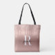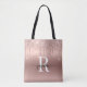 Sac fourre-tout personnalisé élégant et glamour avec monogramme initial personnalisé, lettrage en écriture cursive avec gouttes de paillettes métallisées rose gold. Ce design présente votre prénom dans une jolie typographie de signature de style lettrage manuscrit (ou calligraphie), monogramme initial sur un faux ombré métallisé rose gold rose pâle avec une bordure pailletée glamour qui goutte. Ceux-ci sont faciles à personnaliser avec votre propre nom. Cadeau féminin idéal pour un anniversaire, un mariage, Noël, une fête de mariage, une fête d'anniversaire pour les 16 ans, une soirée bachelorette ou pour la remise des diplômes et c'est pour la fille qui aime les choses stylées et scintillantes.