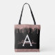 Tote Bag Rose Gold Pink Or Monogramme Pailleté Noir Élégant