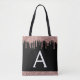 Rose Rose Or et Black Faux Sparkle et Parties scintillant de goutte Elégant Sac de Livre de Monogramme. Ce sac de livre peut être customisé pour inclure votre nom initial et prénom et donné comme cadeau pour Noël, Sweet 16 Anniversaire, Fête des mariées ou Mariage.