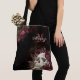 Tote Bag Roses du crâne Nom du monogramme Bourgogne Noir Gr