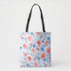 Sac fourre-tout aux roses roses roses délicates et fleurs bleues motif aquarelle.