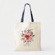 Tote Bag Rouge ombré+Fleurs aquarelles bleu poussiéreux Bie