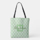 Tote Bag Sage Vert & Blanc Frilly Damask Monogramme
