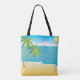 Vue pittoresque sur une plage de palmiers au soleil éclatant. Ce design semble vraiment efficace sur ce Sac fourre-tout