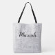 Un design sympa et monogrammé pour un sac fourre - tout noir et gris. Un motif de noms personnalisés de différents styles de polices, avec une grande initiale