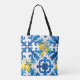 Tote Bag sicilien, été, citron, mosaïque, bleu
