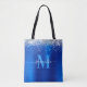 Créez votre propre sac d'achat monogramme personnalisé pour ses vacances de Noël. Royal bleu ombre dégradé couleur fausse feuille et argent parties scintillant art numérique graphique. Monogramme contemporain bleu et blanc clair avec élégante conception de calligraphie de style signature. Vous pouvez customiser et modifier le style de police ou la couleur que vous préférez. Tous les effets de parties scintillant brillants et brillants satinés s'impriment comme une photo sur votre cadeau.
