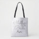 Mariage noir gris blanc simple Mère de la mariée sac fourre-tout de nom personnalisé. Motif floral minimaliste personnaliser typographie. Classy, chic, élégant, moderne, tendance, élégant, beau succulent. Pour modifier un script, cliquez sur modifier la conception. Copyright de l'image Marg Seregelyi Photography.