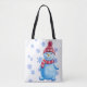 Un fourre-tout robuste à deux côtés avec un Snowman d'un côté et des flocons de neige tombants de l'autre. C'est un joli sac à deux côtés, robuste, idéal pour les cadeaux et peut aussi être utilisé comme le sac cadeau réutilisable à fourre-tout quelques cadeaux à vos amis.