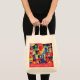 Sac d'épicerie avec la peinture abstraite le "cercle des femmes" du côté.