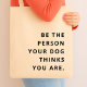 Faites preuve de gentillesse et de positivité grâce au design ludique "Soyez la personne que votre chien pense que vous êtes". Un doux rappel de l'amour et de la loyauté inconditionnels, cette pièce typographique moderne est parfaite pour les mamans de chien, les papas de chien et toute personne qui adore leur meilleur ami à quatre pattes. Joyeux, stimulant et plein de coeur.