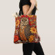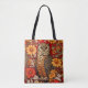 Tote Bag Striped Owl And Zinnia Flowers