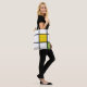Rafraîchissez votre garde-robe d'été avec ce sac fourre-tout de style mondrien avec des carrés géométriques verts et jaunes et des rayures noires audacieuses. Ce design minimaliste et moderne complétera une variété de tenues d'été.