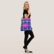 Motif des années 1960, d'inspiration rétro et couleurs audacieuses des années 1990. Ce sac fourre-tout possède une audacieuse motif géométrique dans des couleurs roses, violettes et bleues captivantes et vibrantes, tout en canalisant une touche de style moderne des années 60 ! Personnalisable avec un nom, ou tout texte de votre choix, dans la forme ovale à l'avant. L'arrière montre simplement le motif élégant.