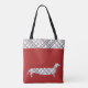 Sac fourre-tout élégant pour les amoureux de les chiens de teckel avec ovale, chien de saucisse de motif de plaid sur le rouge audacieux.