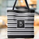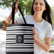 Tote Bag Tendance moderne Monogramme initial noir blanc ray