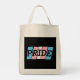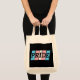 Sac fourre-tout avec texte dans les couleurs du drapeau de la fierté transgenre. Drapeau rose, blanc et bleu du mouvement de la fierté trans, sur un arrière - plan bleu